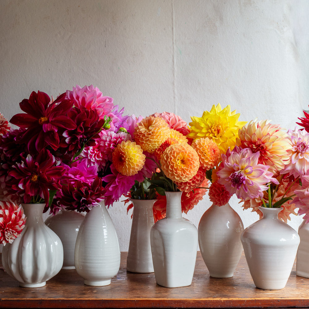 This bud vase is part of a Hand Cast White Creamware Bud Vase Collection produced by 1882 Ltd. in the UK.