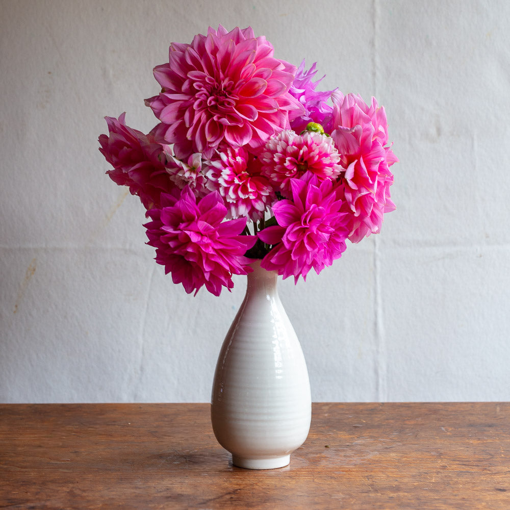This bud vase is part of a Hand Cast White Creamware Bud Vase Collection produced by 1882 Ltd. in the UK.