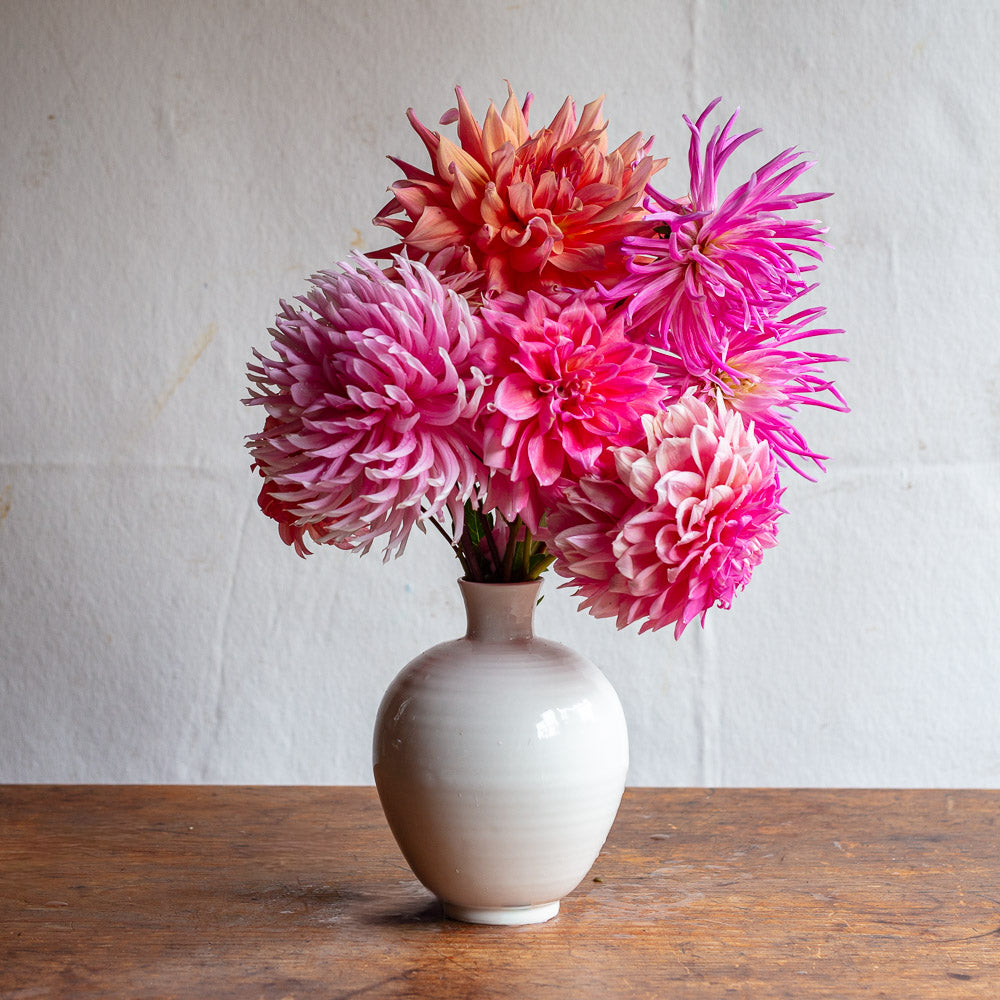 This bud vase is part of a Hand Cast White Creamware Bud Vase Collection produced by 1882 Ltd. in the UK.